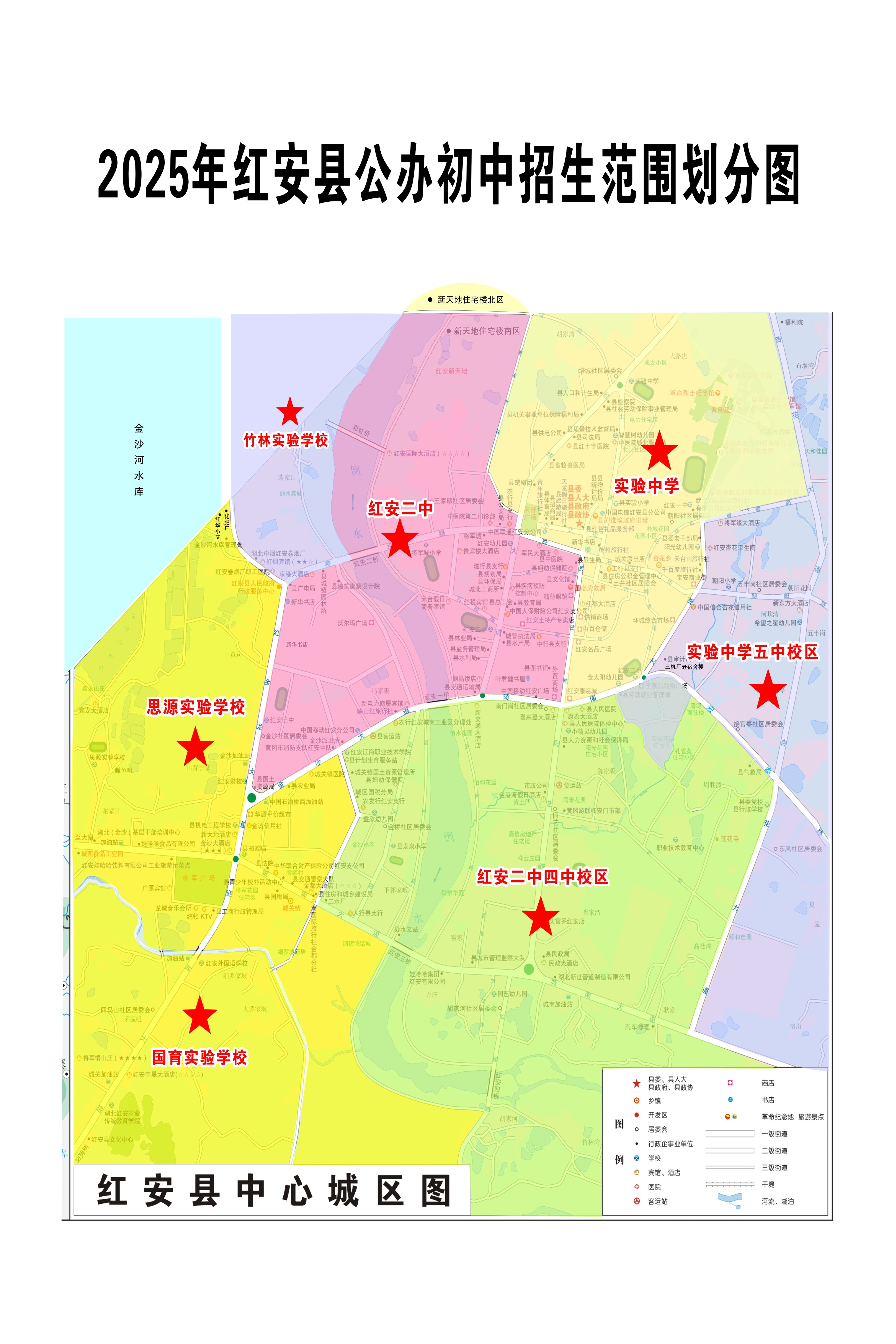 2025年红安县公办初中招生范围划分图
