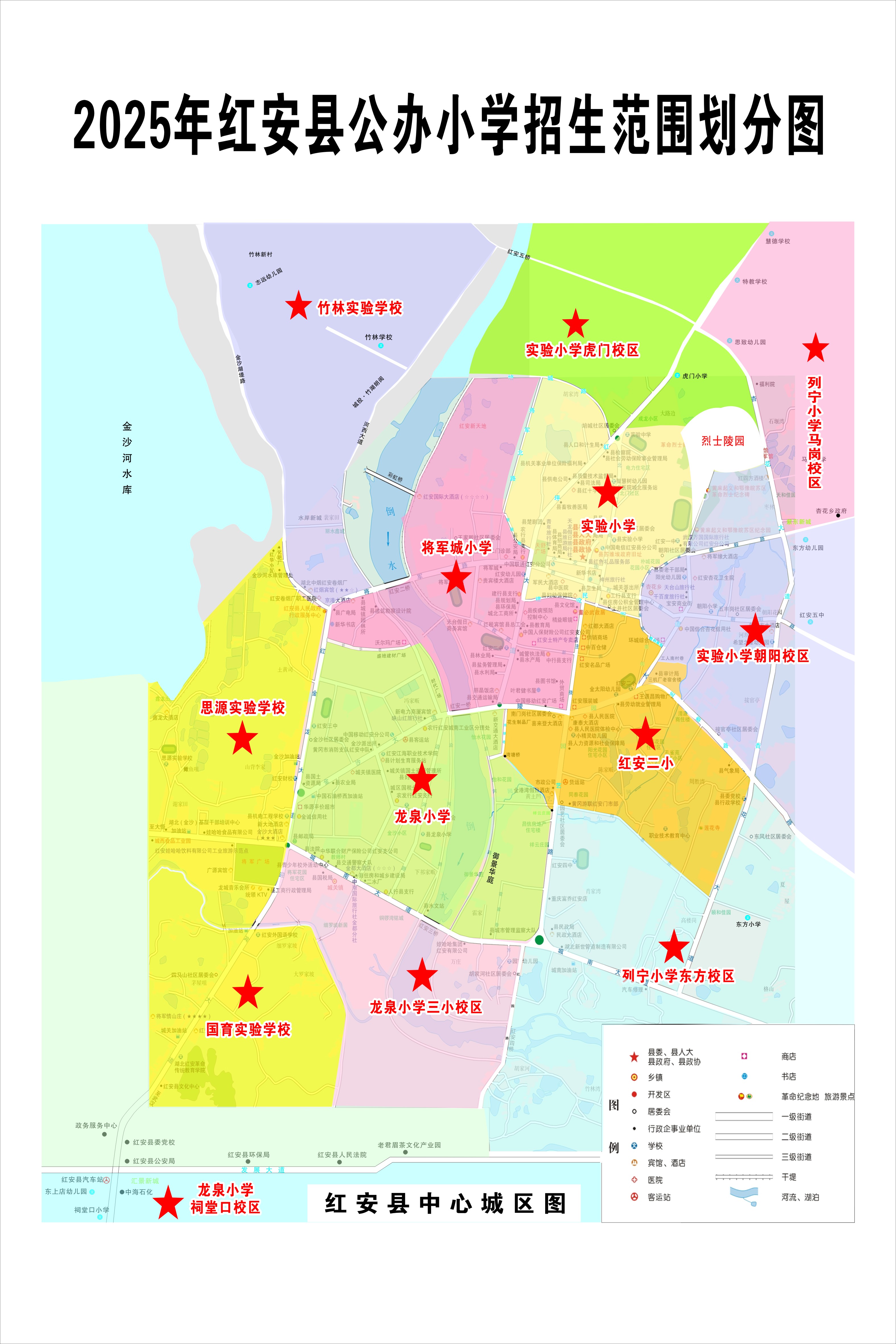 2025年红安县公办小学招生范围划分图